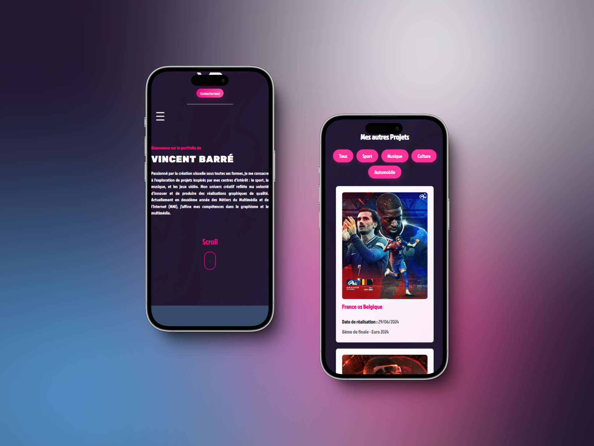 Mon portfolio est une vitrine interactive de mes projets académiques et professionnels, conçu pour refléter mon évolution dans le domaine du design et du développement web. Il présente une sélection soignée de mes réalisations, allant de projets créatifs en graphisme et illustration à des travaux techniques en développement web, comme la création de sites et la gestion de contenu via WordPress. Chaque projet est présenté avec une description détaillée, accompagnée d'images et de liens vers des travaux en ligne. Le design du portfolio est épuré, avec une interface intuitive et une navigation fluide. L’objectif est de mettre en avant mes compétences techniques et créatives, tout en offrant une expérience utilisateur agréable et responsive, accessible sur toutes les plateformes. Ce projet est également une réflexion sur mon identité professionnelle, où chaque élément est pensé pour illustrer mon approche du design, de l’innovation et de la présentation visuelle.